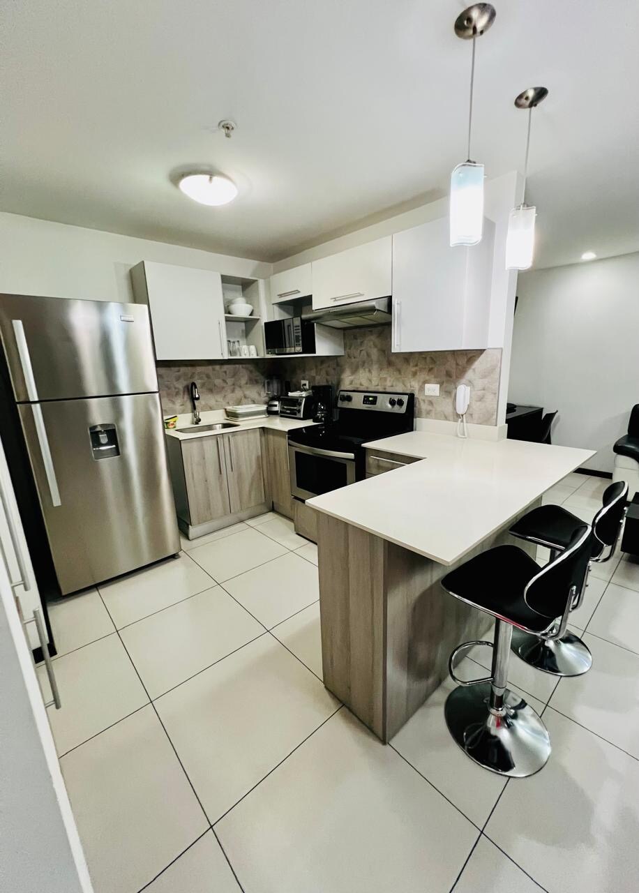 Over 250+ guest served! Modern apartment in 15th floor. Located just a few minutes from Juan Santamaria Airport, in "Cosmopolitan Tower", the best apartment tower of the area. It has amenities like co-working area, swimming pool, sauna, gym, bbq area, concierge 24/7. Located in a safe and exclusive neighborhood surrounded by restaurants, bars, shopping, grocery store, hospitals, lovely parks, etc.. for all your necessities. Come and enjoy of the perfect place whether to relax, work or both.
