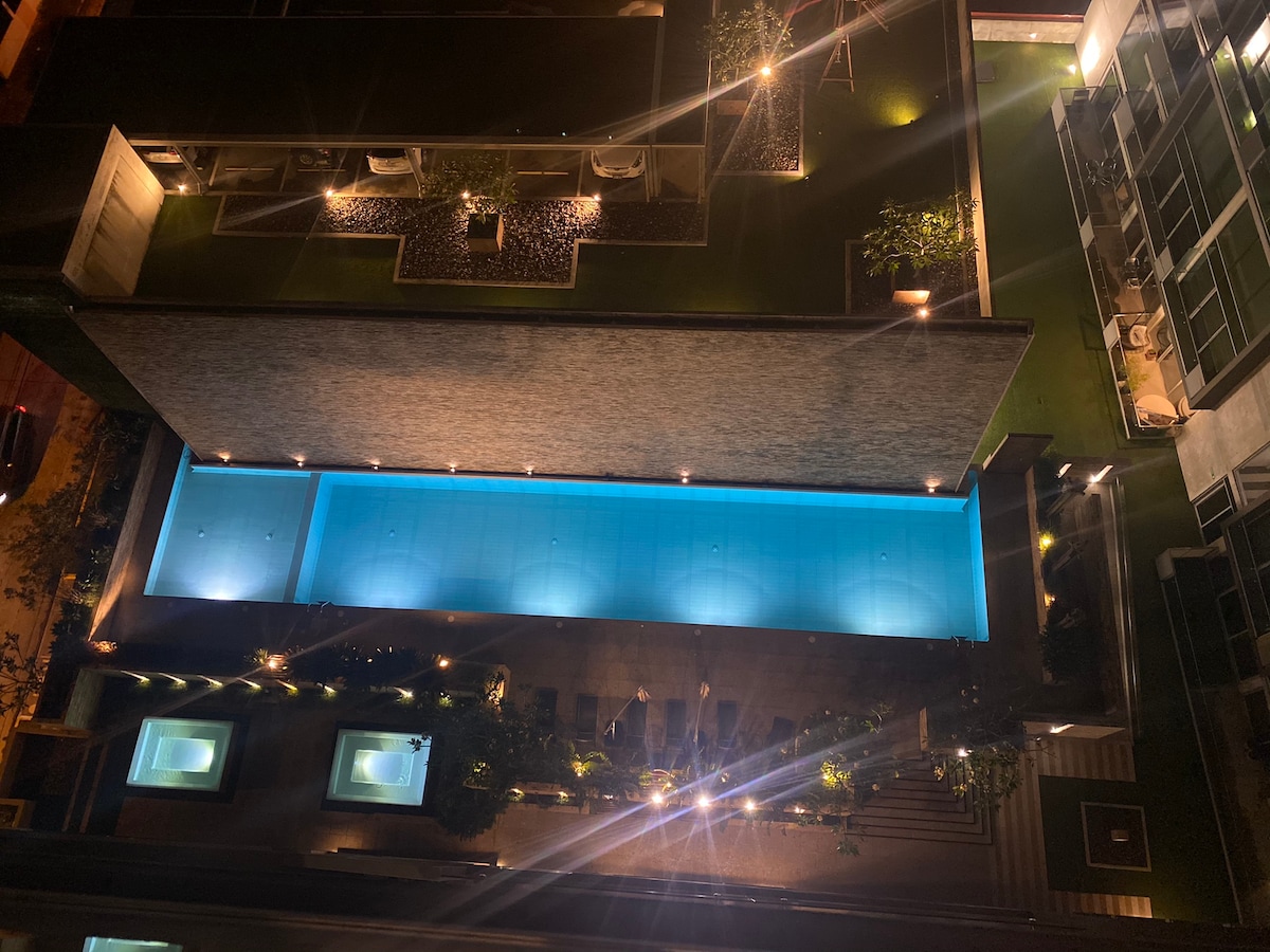 Apartamento ubicado en el piso 10 dentro de un ostentoso condominio vertical con notable diseño, dentro de un vecindario residencial lujoso al oeste del centro de la ciudad, cercano a la zona de la embajada norte americana y china. A una distancia de 20 min del aeropuerto internacional Juan Santamaría y a 6 min del centro de la ciudad. Nuestras habitaciones están cuidadosamente diseñadas para ofrecerle todas las comodidades que se tendrían en un hotel de lujo.