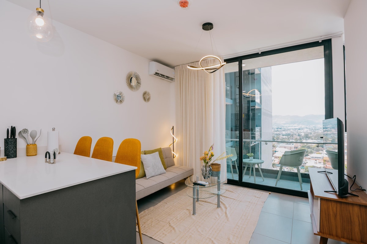 We welcome you to your new and luxurious apartment in the center of the city, located in one of the most iconic residential buildings in the country, with a variety of amenities and just a 5-minute walk away from the most famous gastronomic area of San José. The neighborhood is safe, and has different areas according to your preference (whether it's a night out, or a quiet afternoon in the park). A/C, WiFi 500 mbps, and parking included.