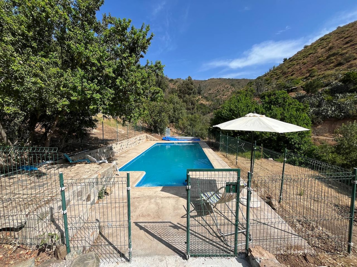 Lugar mágico en medio de las montañas, a las orillas del Río y a sólo 15 minutos de Santiago. Piscina y Río para el verano. La casa tiene una gran sala y comedor con chimenea para estar en familia. Tenemos espacios para asado, horno de barro, hamacas y tranquilos lugares para pasar la tarde frente al río. En la noche disfruta de las estrellas frente a la chimenea y descansa con el susurro del río. La generosa casa colibrí es ideal para familias.Ven con otra familia amiga.