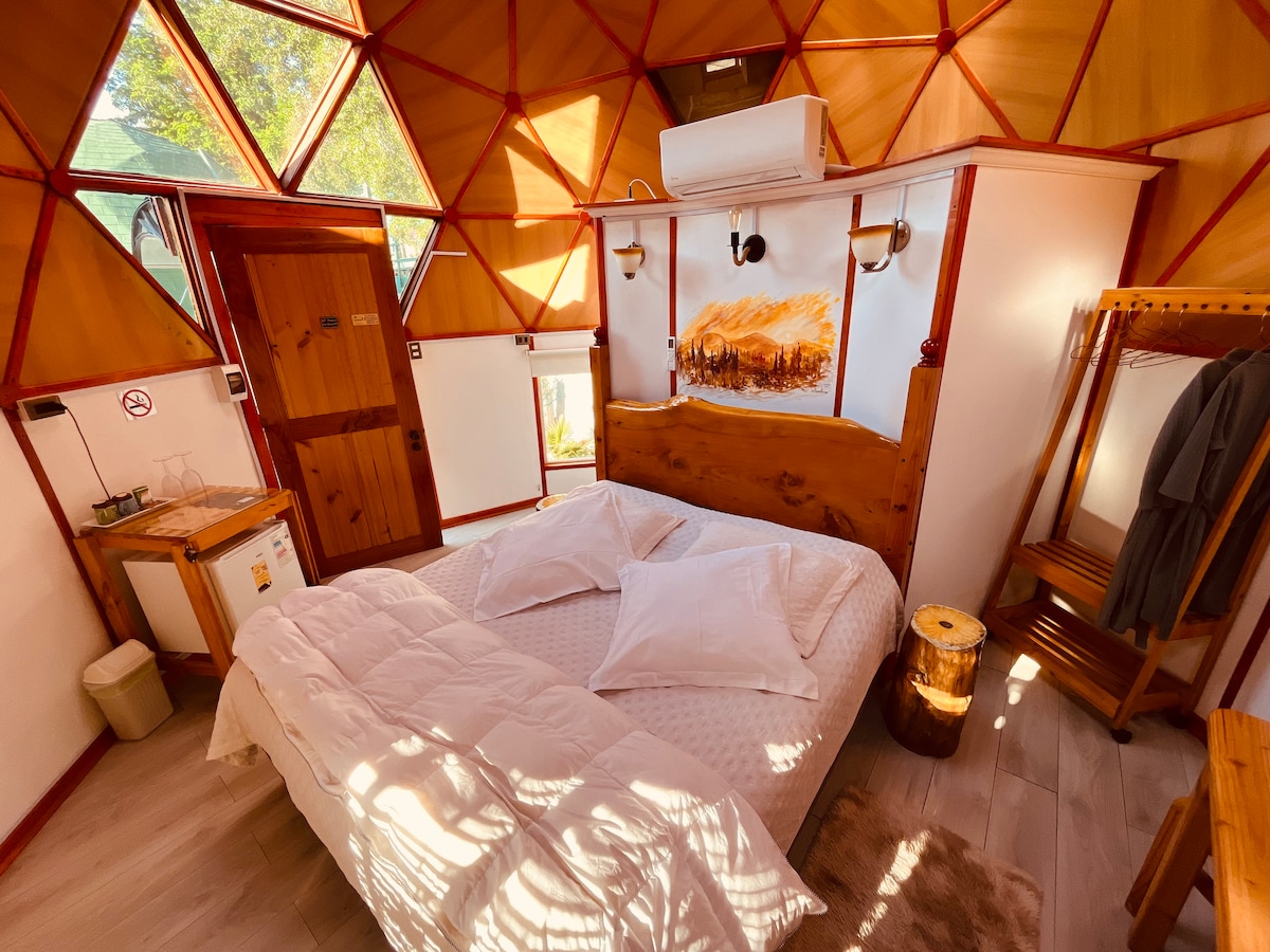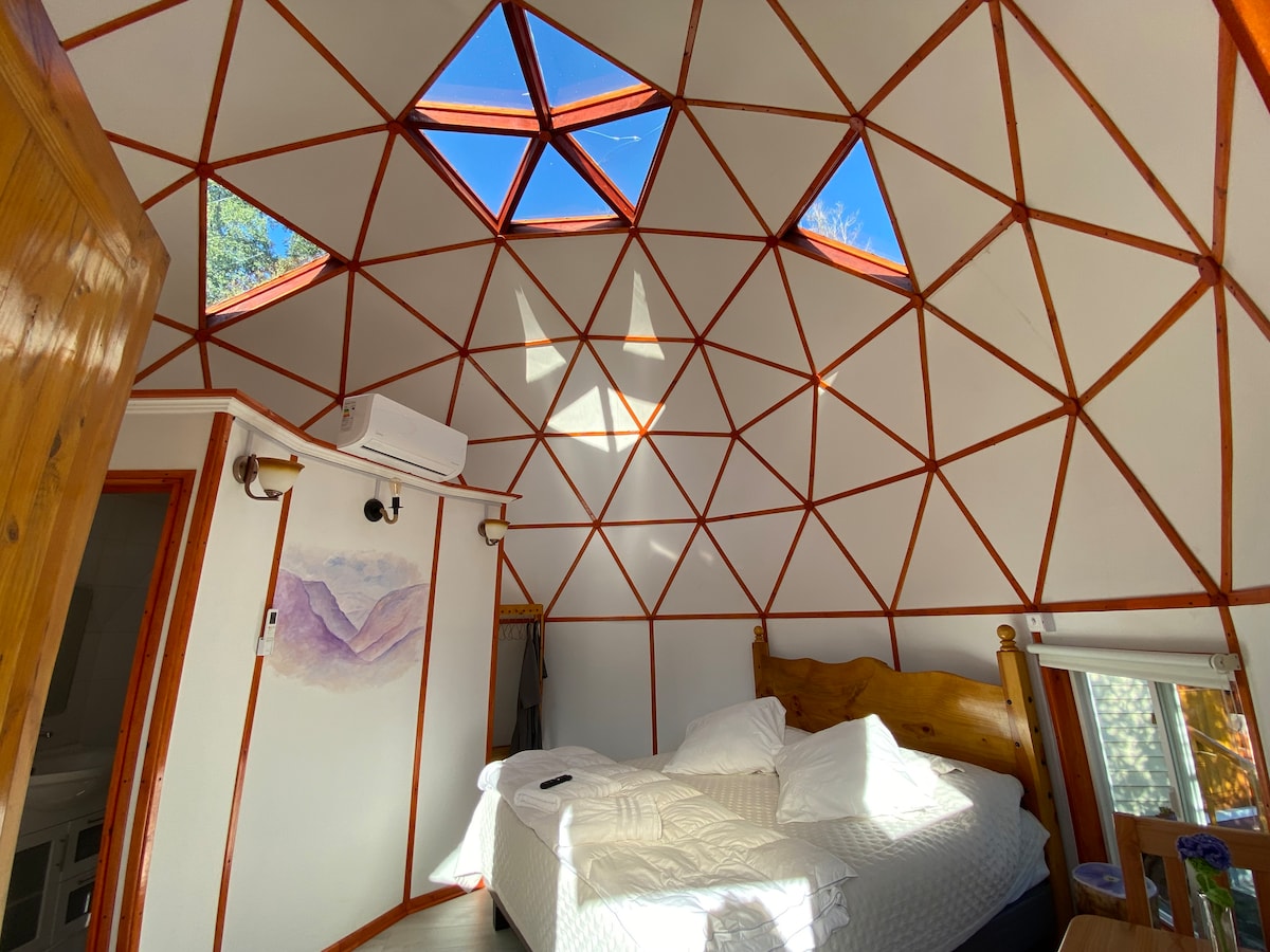 Experiencia diferente en un domo recién renovado de madera , tiene aire para climatizar, realmente precioso , vista a las montañas , absoluta tranquilidad , total privacidad en un Lugar de relajo y desconexión. Un lugar mágico para ir en pareja , cerca de viñas , paseos en el cajón del maipo, a los pies de las montañas , excelentes lugares para almorzar o comer como el "ESKENAZO" A 7 minutos del domo .