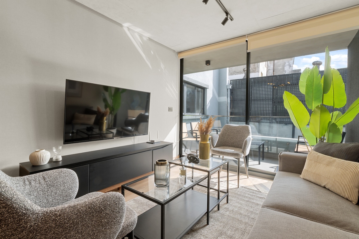 Modern and comfortable apartment in the heart of Ñuñoa. Enjoy an unbeatable location: just steps from the metro, Plaza Ñuñoa, and Mall Plaza Egaña. Surrounded by restaurants, shops, cafés, pharmacies, and everything you need right across the street. The apartment includes free private parking in the same building, a gym, and 24/7 security. It also features air conditioning and a self check-in system with a smart lock, so you can arrive whenever you like.