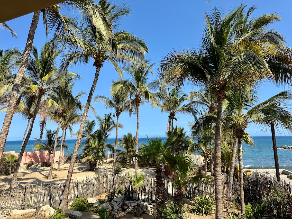 If you are looking for the perfect base for your Cabo explorations, you have found it! This La Jolla studio's beachfront location, cleanliness, and layout make it a good choice for the travelers who are looking for a budget-friendly lodging experience. The entrance is gated with a 24-hr guard to ensure maximum safety at all times. There are two pools, gorgeous landscaping, and a very comfy bed! Walk down the beach to epic surf breaks and various bars and restaurants. Mi condo es su condo!