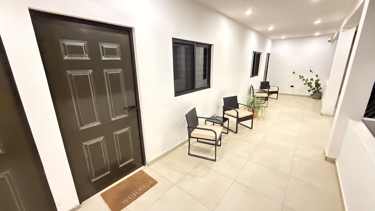 Estudio amueblado, zona céntrica y tranquila, estacionamiento sobre la misma calle o terreno de junto. Con Aire Acondicionado, ventilador de techo, WiFi, ROKU TV, refrigerador, microondas, cafetera, tostador, estufa, vajilla, tarja, cubiertos y artículos básicos para cocinar, patio de servicio con lavadero. A 10 minutos caminado del centro histórico de San José, 5 minutos en auto de centro comercial, de playa y zona turística. Fácil y rápido acceso a vías principales y transporte público.