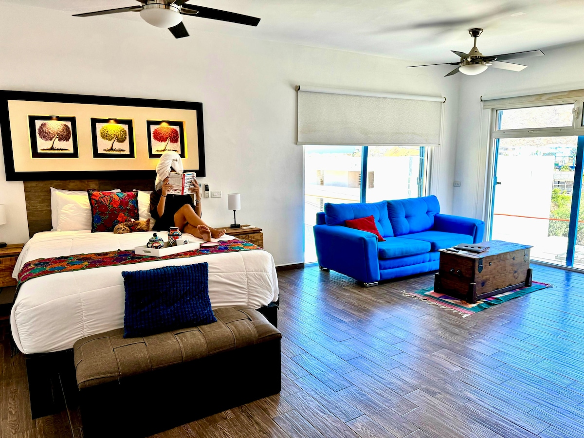 Our studio has a real superior value, check it out! Beautiful and comfortable mexican style studio, featuring california king size bed, living area, private terrace with hammock, private bathroom, air conditioned, linens are provided, Wifi, swimming pool and we are pets friendly with extra cost of 25 USD each one. You will stay at the exclusive San Jose del Cabo Art District and Historic Downtown, surrounded by the church, shops, estuary, the beach, restaurants, bars, local market, galleries.