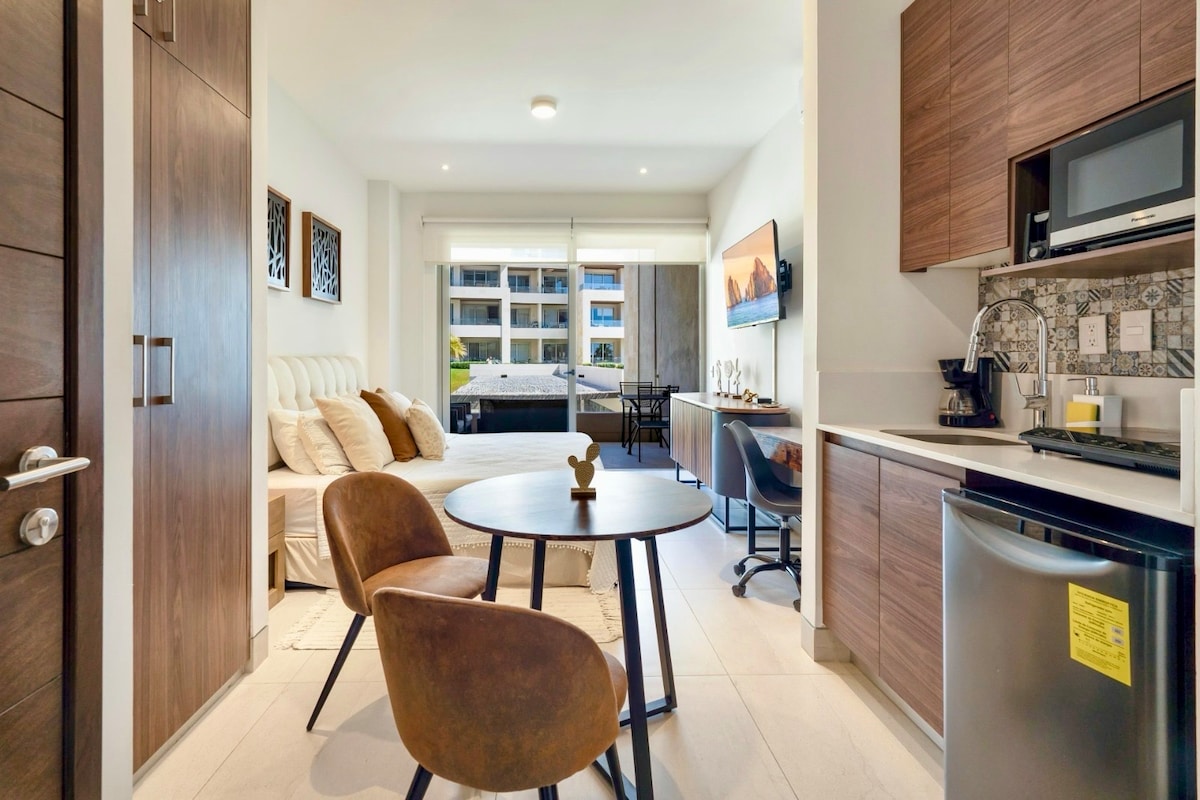 A unique and tranquil getaway, with a private entrance, this adorable studio is perfect for solo travelers or couples seeking serenity. Located in The Golden Zone of Los Cabos overlooking the Sea of Cortez. *Only 10 minutes to either San Jose del Cabo or Cabo San Lucas* Uber is ~$10 usd to either SJD or CSL downtown or take a $2usd motorcoach ride a short, safe 5 minute walk from the property. Several outdoor areas to relax or enjoy the sunrise and sunset.