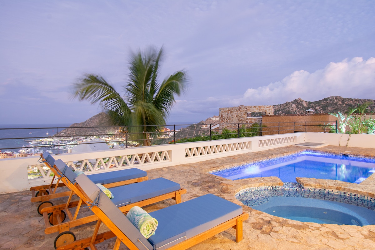 ¡Disfruta de este hermoso loft panorámico con jacuzzi privado, ubicado en la Marina de Cabo San Lucas, El espacio ofrece comodidad, privacidad y una vista espectacular, ideal para disfrutar Cabo caminando a restaurantes, bares, tours y vida nocturna. El loft está preparado para hasta 4 huéspedes, con cama King Size y sofá cama Queen Size, perfecto para parejas, amigos o familias pequeñas. Después de un día en la playa, relájate en el jacuzzi con vista a la marina.