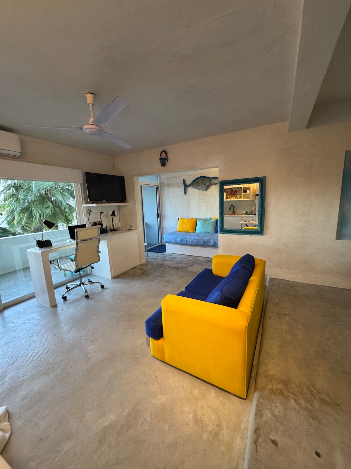 Enjoy a stylish experience at this centrally-located place. Close to San Jose downtown. 1.5 mil from el Ganzo. 3 min away from the main attractions. 4 blocks away from the ocean. This place is a true gem. 5 markets and food places all around. WE suggest a car as distances can be far at time. But to explore Cabo it’s better by car. NO PARKING space inside the property,but street parking it’s allow and safe.