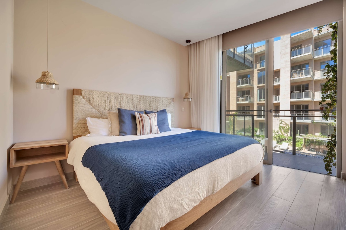 Second floor 3-bedroom condo at Las Arenas with the best terrace and direct access to pool and amenities. Inspired by Los Cabos style, surrounded by desert vegetation. Premium décor, 3 beds, 3 baths, sleeps 6. Community features pool, jacuzzi, firepit, gym, massage room, sauna and breathtaking sunsets. Only 500m from Medano Beach access through RIU Hotel and close to downtown. Perfect mix of luxury, comfort, and vibrant vibes.