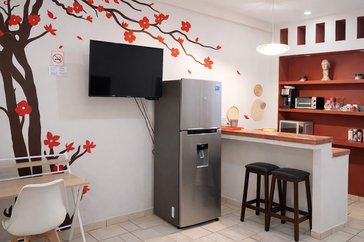 ¡Bienvenidos a Los Cabos! Te ofrezco un pequeño departamento súper acogedor, limpio y fresco en el que todo mundo es recibido. Su ubicación está a tan solo 12min del aeropuerto y a 14min del centro de San José del Cabo. Espacio ideal para parejas o familias pequeñas. Seguimos todos los protocolos de limpieza, para tu mayor comodidad. En este espacio no está permitido fumar. Las mascotas no están permitidas. No se permiten fiestas o eventos que causen conductas molestas a los vecinos.