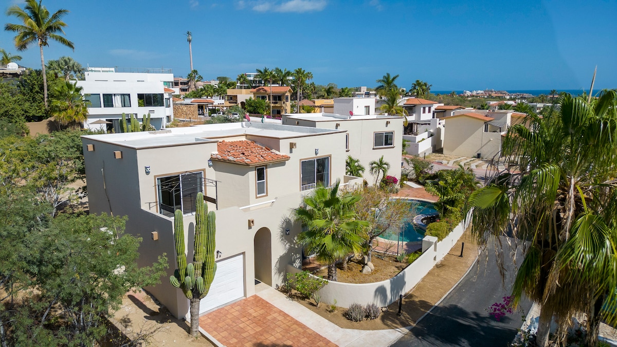 “Our stay in Cabo at this Airbnb could not had gone better! Gorgeous, cozy and comfortable.“ ✔ Enjoy our new ocean-view condo, perfect for an unforgettable vacation. ✔ Relax on the main terrace with dining area and grill, or on the private terrace in the master bedroom. ✔ Located 3 min walking from Costco, 4 min from Plaza Novva, and only 5 min driving to Medano Beach. ✔ Offers private entrance, parking, beach chairs, umbrellas, 3 bedrooms, 3 bathrooms, 4 TVs, gym, and a large pool.