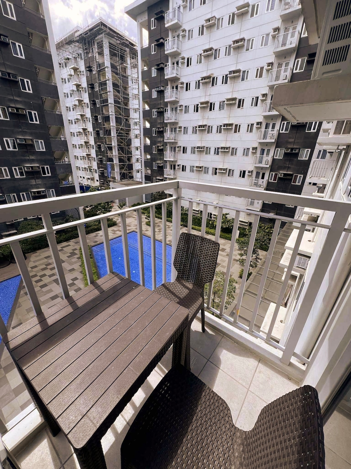 Situated on the 3rd floor of an apartment building, enjoy your stay here with your friends and dine outside the patio! What we have: -AC -Unlimited WIFI -Bingewatch all night as we have NETFLIX -Kitchen with single Induction stove + complete utensils -Refrigerator What we don't have: -Water heater -Projector (the one in the photo) is owned by the previous tenant -Parking area (but there's limited street parking for motors)