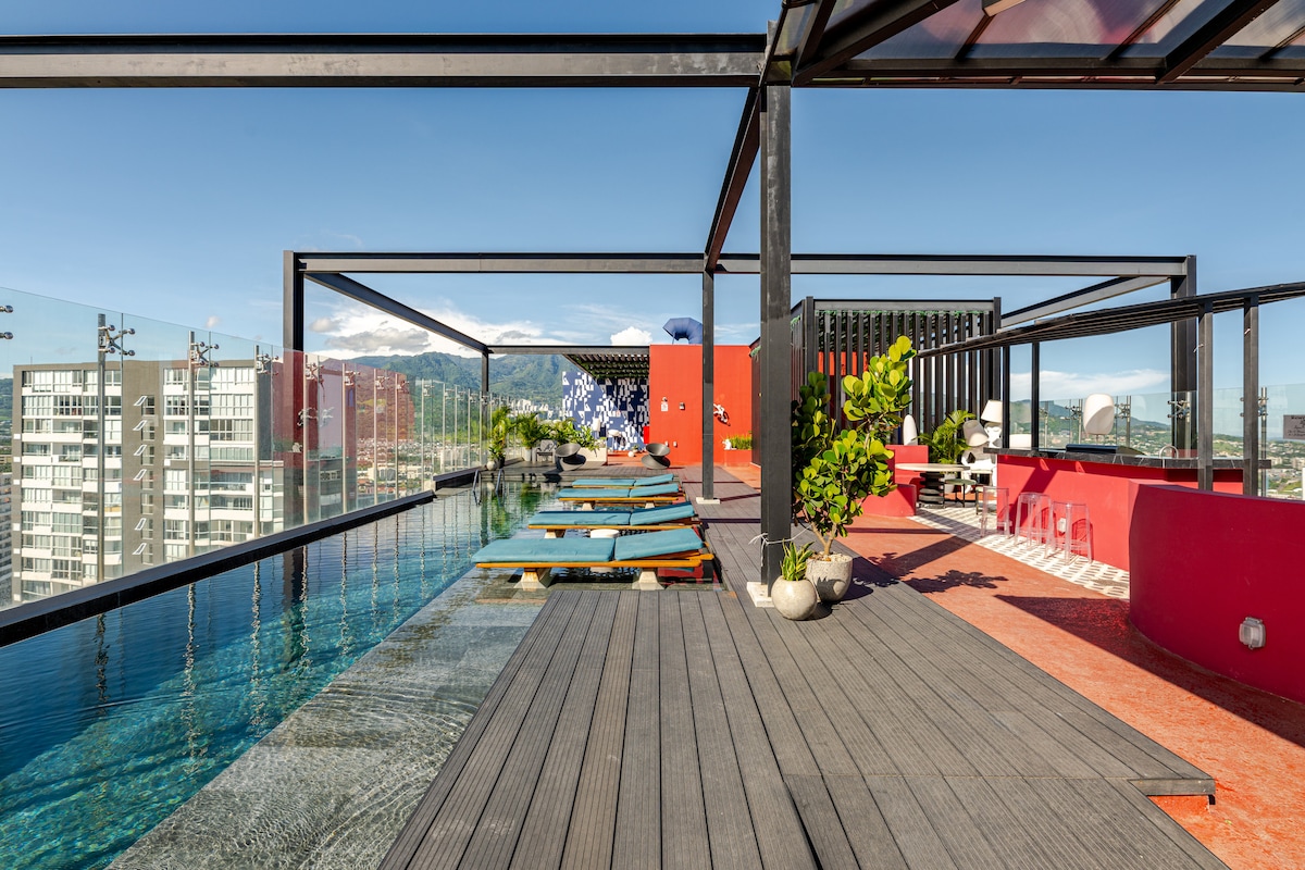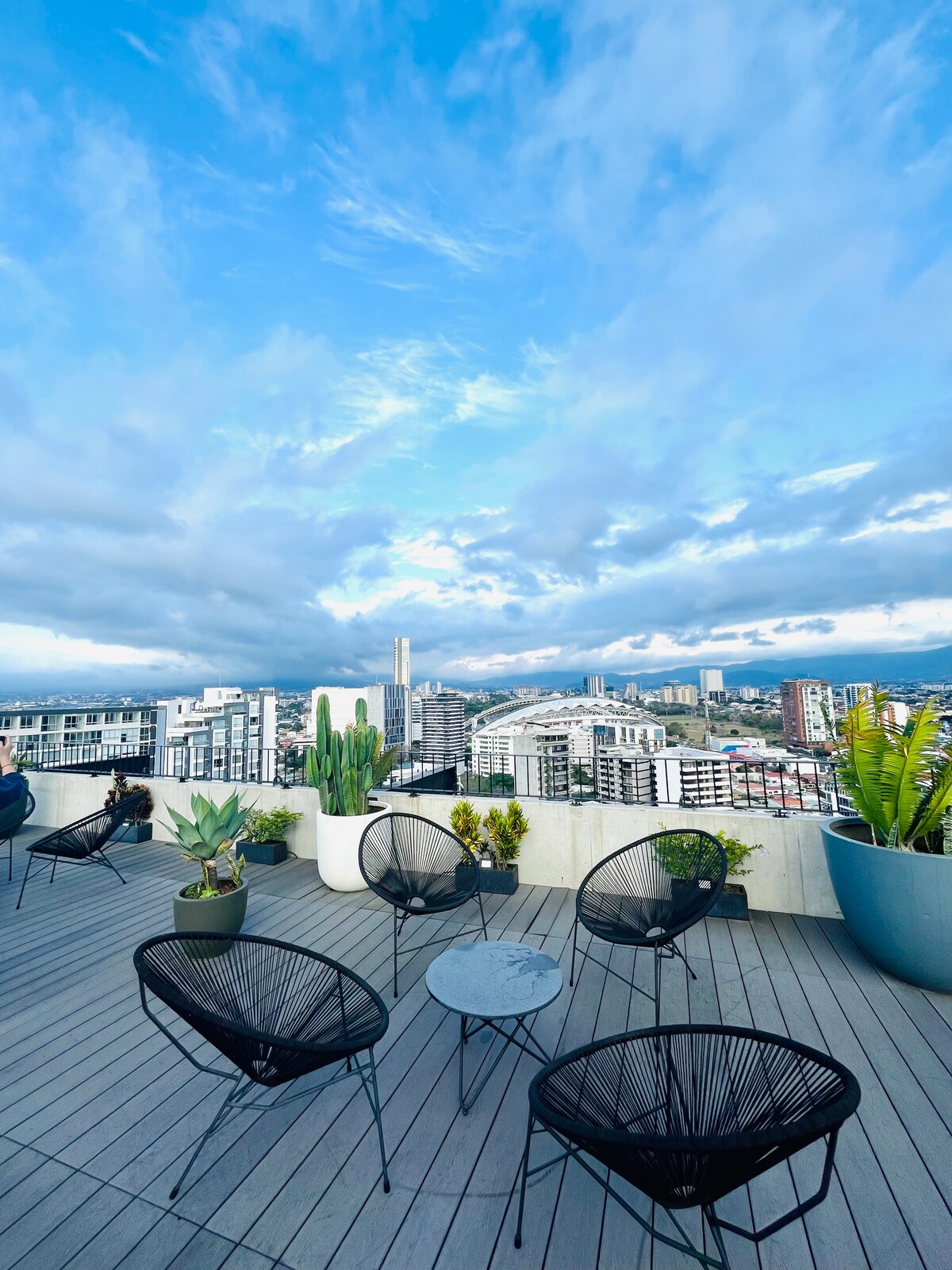 We welcome you to your new and luxurious apartment in the center of the city, located in one of the most iconic residential buildings in the country, with a variety of amenities and just a 5-minute walk away from the most famous gastronomic area of San José. The neighborhood is safe, and has different areas according to your preference (whether it's a night out, or a quiet afternoon in the park). A/C, WiFi 500 mbps, and parking included.