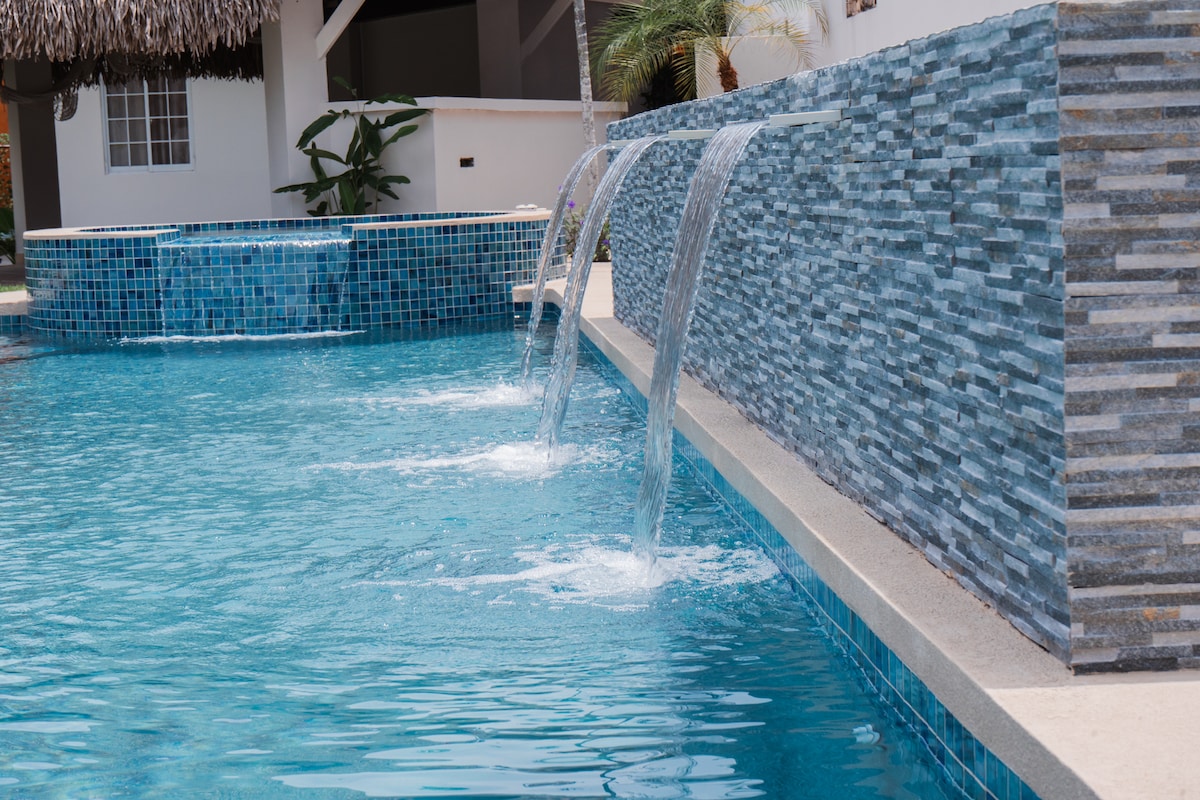 Majestic Sands! Come relax with the whole family at this piece of paradise.located in a private beach community in Costa Esmeralda, San Carlos. Few minutes from the Pan-American highway and a few minutes from other local beaches such as Gorgona, and Coronado. It is a 5-minute walk to our beach, or if you prefer you can go by car. The home includes an amazing saltwater pool and hot tub with hammocks with views of amazing palm trees.Uninterruptible power with Smart Home Energy Management Systems.