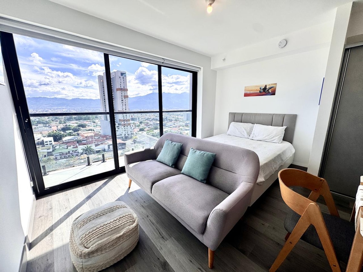 This is the life style that you deserve! Rated in Top 5% by Guests! Designed for long stays, remote working, medical tourism, one day tours base and digital Nomads. Comfy, Luxurious, Eco-Friendly, Fully equipped apartment in 14th floor in the Cosmopolitan Tower, the newest building in the best location of San José . Its located near the airports, Hospitals, Embassies, jogging parks, synagogue, restaurants and fast food, convenience stores, malls. Enjoy night city lights views everyday!.