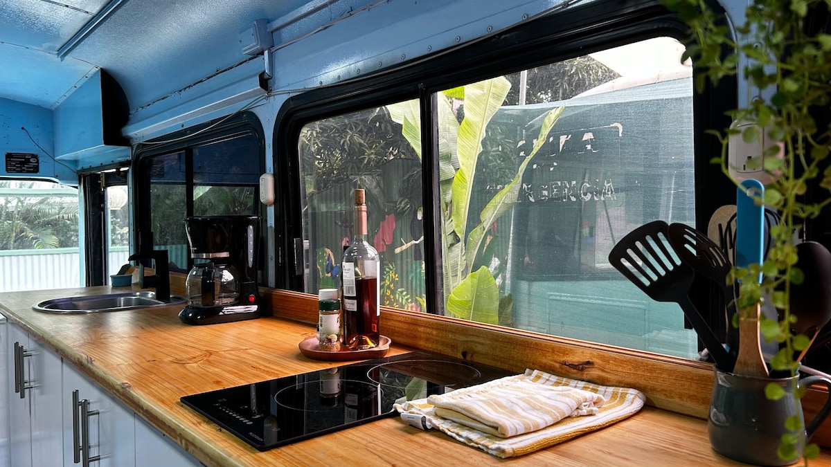 Conecta con la naturaleza en una experiencia única. Escápate a lo esencial y descubre una experiencia de hospedaje diferente. Un acogedor bus convertido en refugio, ubicado en Alto Varas de Turrialba, a solo 11 km del centro de Turrialba. Rodeado de naturaleza exuberante en un ambiente cálido y encantador, perfecto para desconectarse del ruido y reconectar contigo mismo, tu pareja o la naturaleza. Cada rincón del bus ha sido cuidadosamente adaptado para brindarte comodidad y tranquilidad.