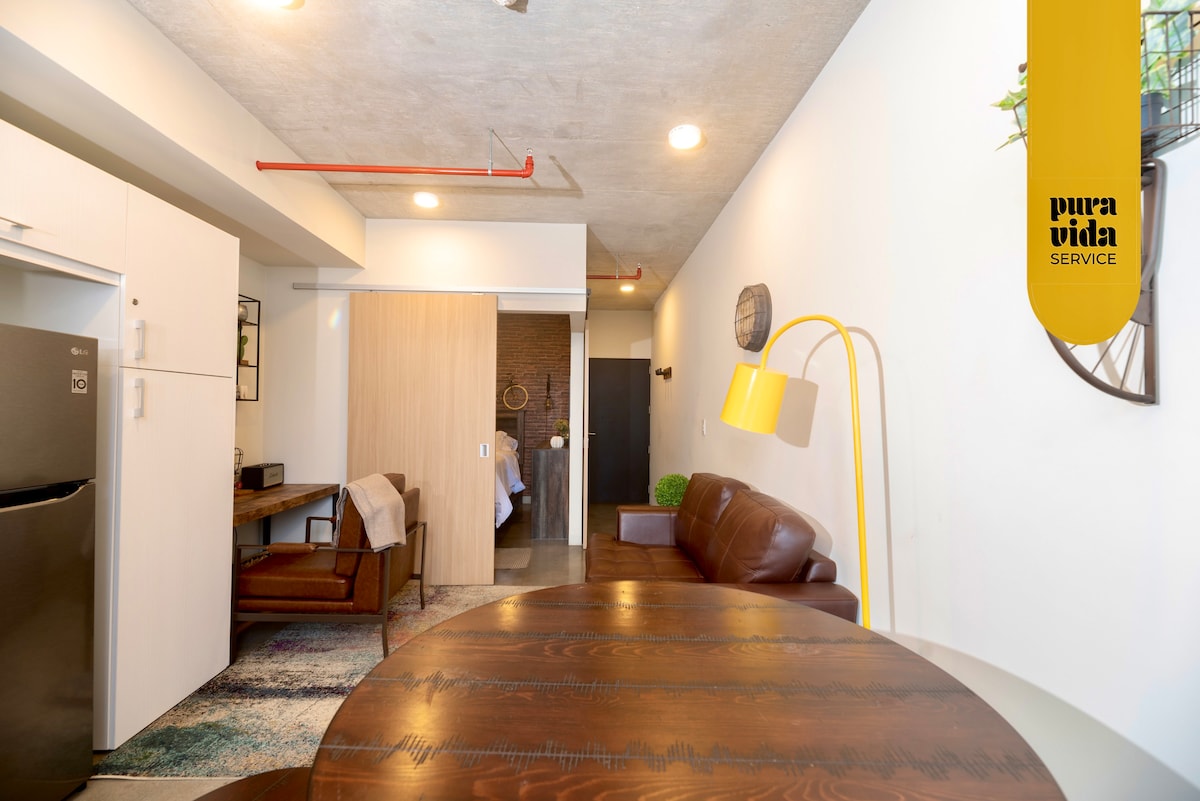 The loft is equipped so you can rest all day or work from here. You have a beautiful view of San José. It has a kitchen, comfortable bed, a comfortable bathroom, and all the amenities. But if you decide to go out for a walk, you will have the most relevant gastronomic area of San José, graffiti, restaurants, parks so you can have a coffee in a safe area full of the Costa Rican capital spirit. Work or rest, in a central and accessible area.