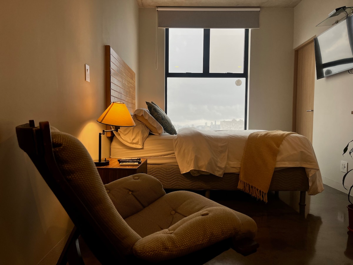 全新单床阁楼,可欣赏壮丽的城市风光