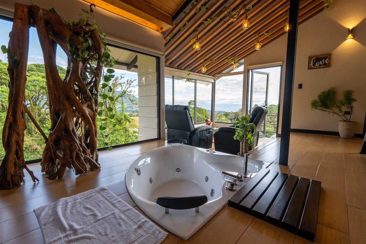 Desconecta de tus preocupaciones en este espacio tan amplio y sereno. Rodeado de naturaleza. Lugar tranquilo con hermosa vista, todas las comodidades, jacuzzi, tina y chimenea. Se va convertir en el espacio perfecto para desconectar del caos de la ciudad. Aeropuerto Juan Santamaría- 30 minutos en carro Volcán Poas- 40 minutos en carro Peace Lodge Waterfall Garden-30 minutos en carro Vara Blanca- 20 minutos en carro Alajuela centro- 20 minutos en carro San José centro- 1 hora en carro.