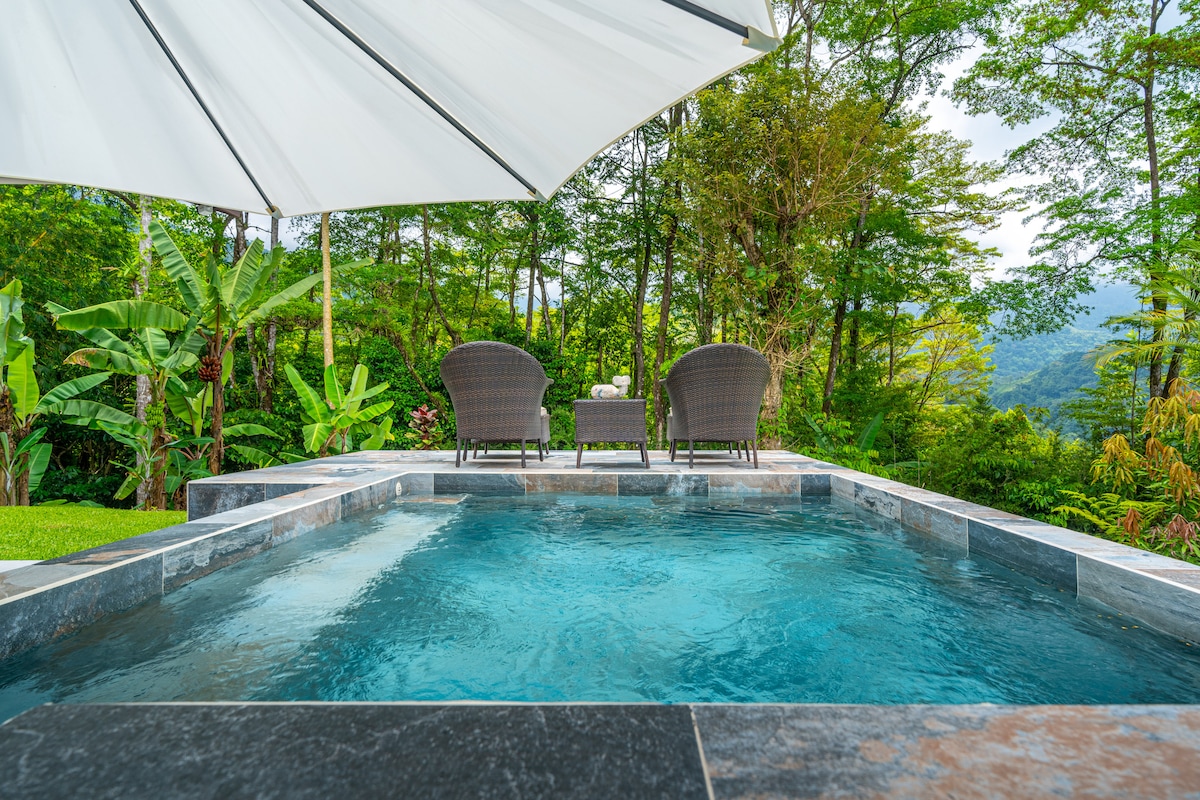 Serene, beautiful 2 BR/3BA open concept home with infinity pool bordering Manuel Antonio National Park. Last home on a quiet street in the community of Colina Monito. Frequented by wildlife as the house borders the National Park- it’s as though you’re staying in the park! Minutes away from shopping and local restaurants, yet private. Concierge service and maid service included along with many amenities. Short drive to the beach. Also NEW modern bathrooms and NEW path to the waterfall!