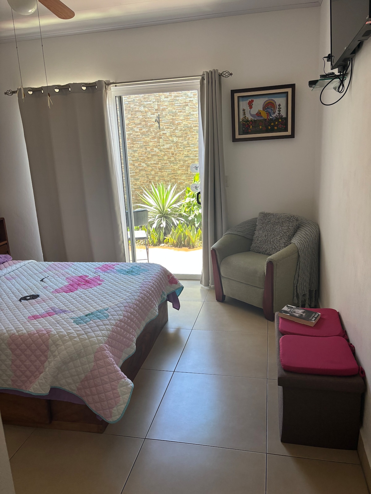 Welcome to PROVECHOZAS! ESTUDIO PIÑA is located on a family-owned property home with fruit trees & wildlife. This stylish place with a cozy full size bed offers a private & central place to rest & recharge, making it the perfect option to plan your next adventure or unwind before your flight. We offer 1 outdoor parking spot in front of the garage. Air conditioner. Secured & inside the main propery. Locations: SJO airport 3km City Mall 200 meters Sport Center (300 meters) City Center (2km)