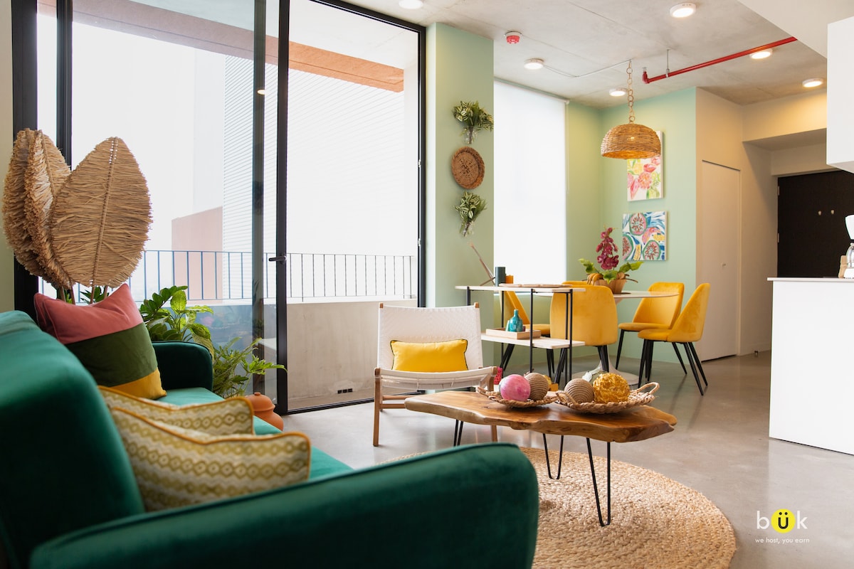 Enjoy a bright 69m² (742 ft²) apartment in Barrio Escalante, within walking distance to restaurants and shops. The apartment has windows overlooking the south and north, making it bright but without the risk of overheating. We take guest feedback seriously, and many improvements have been made to enhance the quality of your stay, including headboards, more plugs, a working area, a blender, and a powerful split AC in the common area. Ideal for both work and leisure.