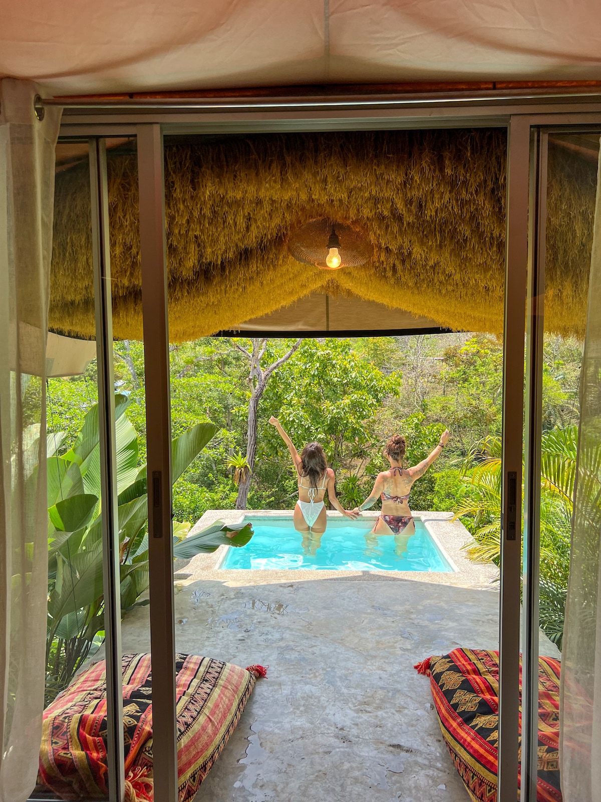 Immerse yourself in the sights and sounds of nature at this truly unique getaway. Picture yourself enjoying an outdoor shower or taking a refreshing dip in the pool while monkeys swing through the trees and vibrant macaws visit nearby. After a fun day on the beach or exploring the local sights, retreat back to your cozy hideaway, where you can prepare your own meals in the fully-equipped kitchen of your tented paradise. Ready for an unforgettable adventure? Book your stay today!