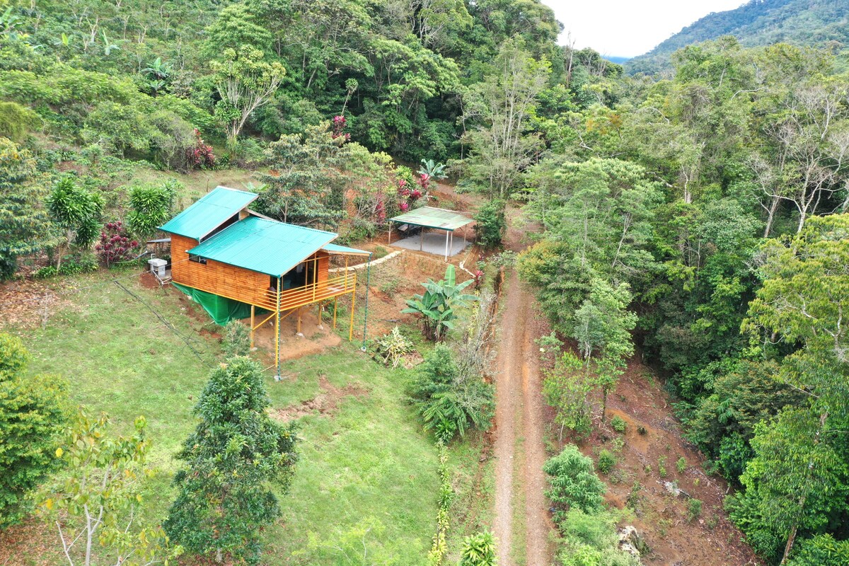 Beautiful treehouse 70+ ft up in the air. You'll have an ocean view of the whale's tail, fauna, and flora. Located deep in the jungle in a community. Private bathroom sink, fridge, and stovetop. The only access through gondola 100 ft ride.