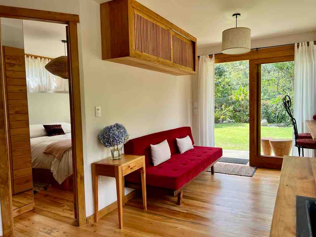 Little one bedroom casita nestled between guava trees, gardens and beautiful views. You feel like your in your own tropical island between the Lloroso and the Talari river. Walk through the paths to find a rock beach to swim in any of these two fresh water rivers. Unique view where the majestic Talari and Lloroso rivers meet. Beautiful views of Uran. Pick your own organic greens and herbs from the garden and cook lovely meals. Very private location where you can relax and enjoy life.