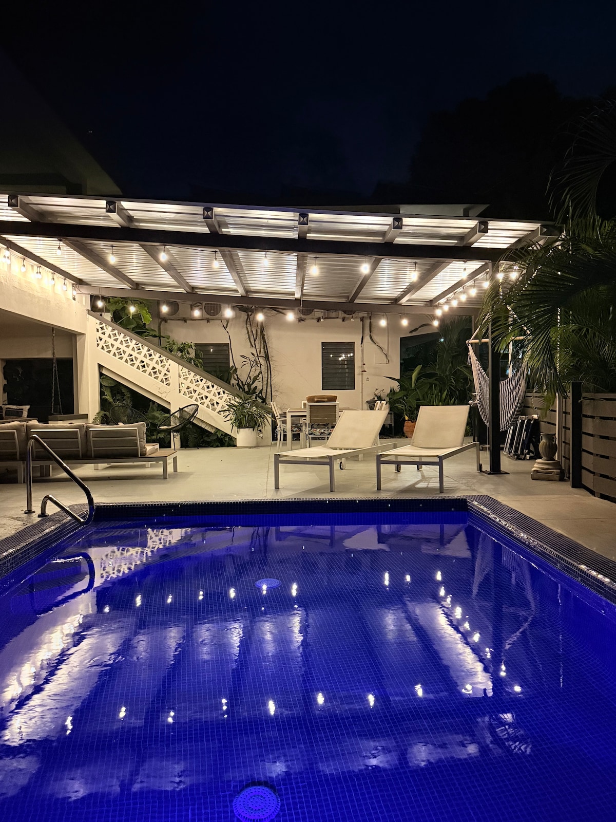 Plan a relaxing getaway while enjoying a private pool with sundeck, fire pit, 100-inch screen projector, gazebo, and pool table that are exclusive for the guests of Lunabela. This special place is just a 10-minute drive from both the beach and Guajataca River, and within walking distance to the mall, restaurants, and bakeries, making it easy to plan your visit and explore Isabela. The unit has a fully stocked kitchen, AC, king-size bed, Wi-Fi, TV, free parking space, BBQ grill, and board games.