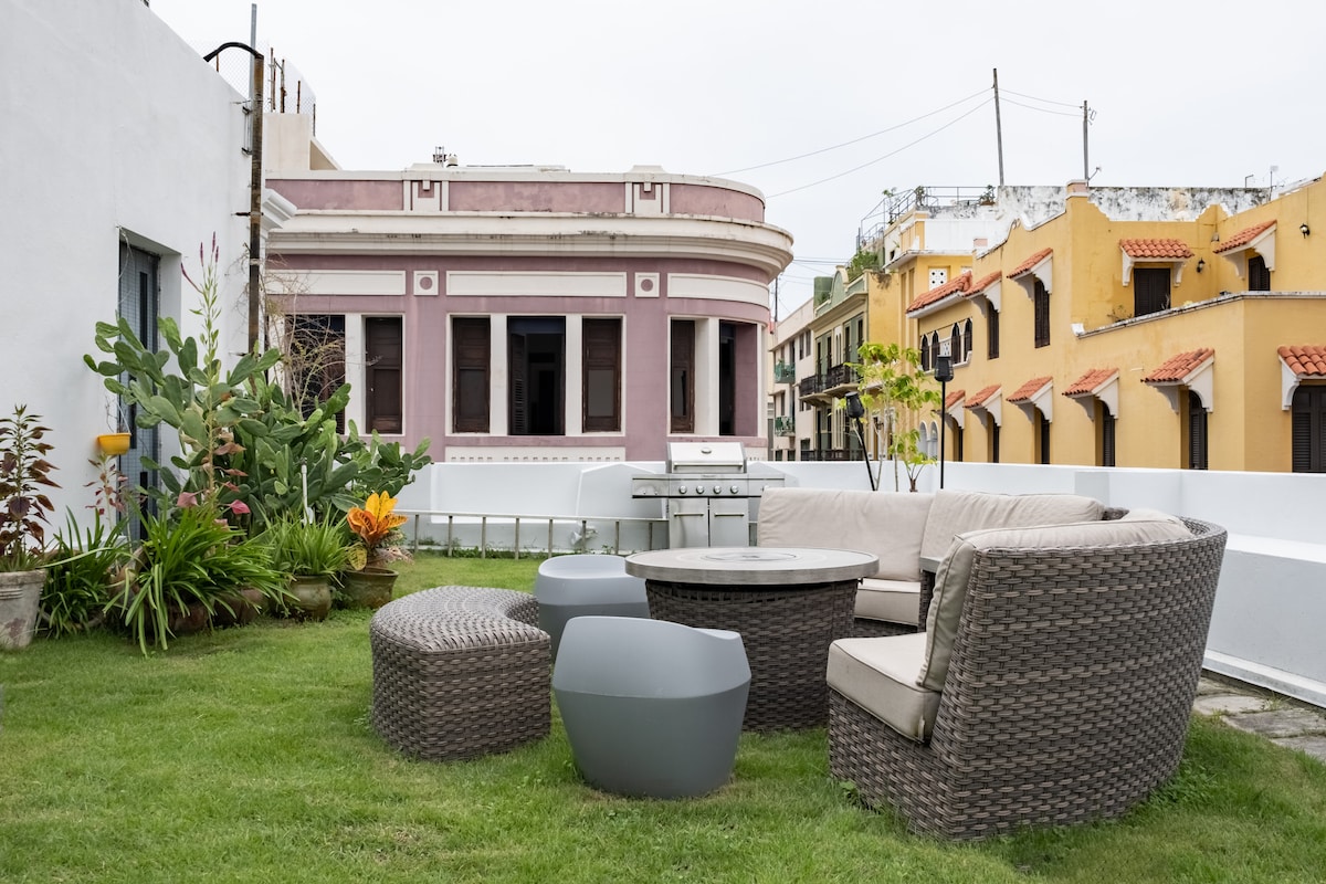 Experience the vibrant pulse of Old San Juan! 🇵🇷 In our 2BR/1.5BA home, historic Spanish-Caribbean style meets modern energy. 🏡 The living space features classic open-beam ceilings, adding to the home's unique character. Step outside to your lush, private courtyard, a hidden oasis in the city. 🌿 You're just moments from Castillo San Cristóbal 🏰, lively plazas 💃, and the waterfront 🌊. Your unforgettable adventure starts here! ☀️🌴