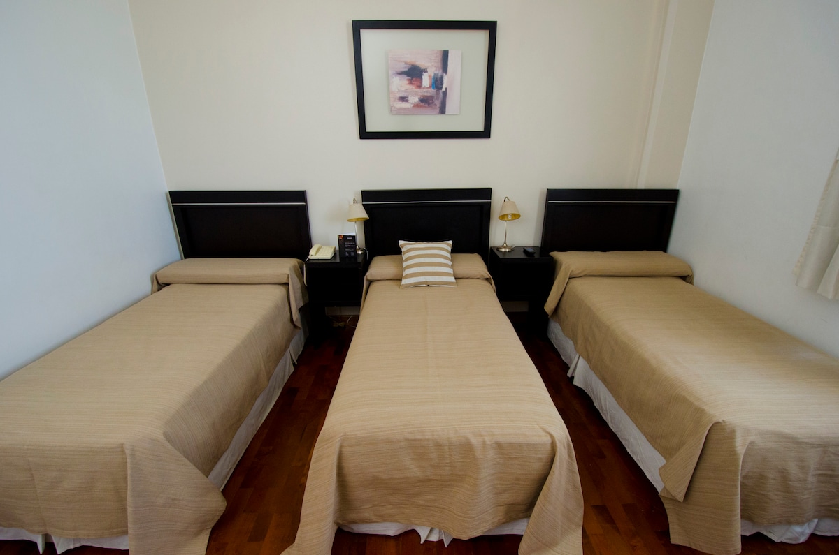Equipada con somier 2 plazas mas 1 cama individual, piso parket y exclusivos detalles. Su cuarto de baño posee terminaciones en mármol y porcelanato de la más fina calidad, hidromasajes, LCD 32 pulgadas, frigobar, aire acondicionado split frio calor con control individual y caja de seguridad para notebooks hasta 17 pulgadas.