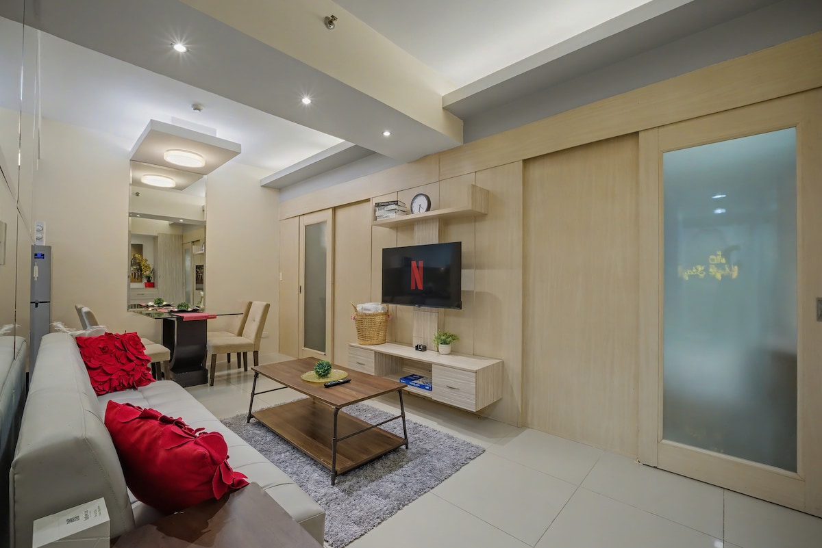 Stay where everything is just minutes away — malls, parks, offices,m. A perfect blend of city convenience and calm living. 🏡 The Space • Spacious 2-Bedroom Unit • 2 Toilet & Bath • 2 Queen Beds + Extra Mattress • Comfortably fits 8–10 guests 🌿 Designed for Comfort • Big, open living space • Fully equipped kitchen • Smart TV w/Netflix 📸 Signature Touch A cozy, elegant photo corner - perfect for soft, chic moments and memorable stays Spacious. Cozy. Comfort. Your soft escape in the city