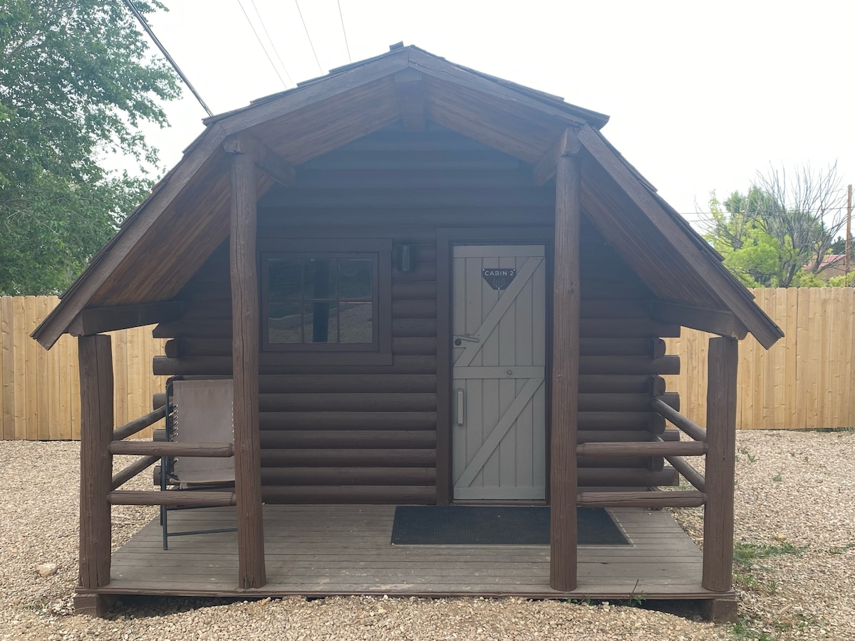 Please join us! We are offering cabin rental on our developing property. Our 1 bedroom, 1 bath cabins are equipped with bartop counter, fridge/freezer, dishes , K Cup coffee maker and microwave in the kitchenette. Enjoy a rinse in the natural stone shower with dual shower heads. The living room has 2 couches with a full size pull out and hand made coffee and end tables. Outside is a covered patio with table and chairs. There is parking located on the side of each unit with private entrance.