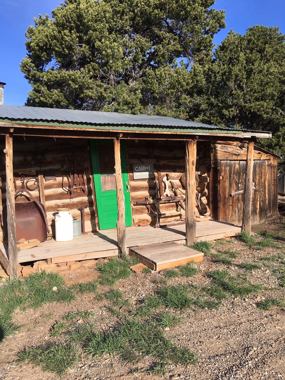 This property has 3 rustic buildings to rent. They are: 1-Hogan: with a double bed and three single bench beds. https://www.airbnb.co.in/rooms/17879149?preview_for_ml 2-Bunkhouse cabin: with ten bunks. https://www.airbnb.co.in/rooms/17879435?preview_for_ml 3-Cabin #1: with queen bed https://www.airbnb.co.in/rooms/17879501?preview_for_ml All guests have access to shared spaces: 1-Bathhouse 2-Cookhouse 3-Wifi 4-Spectacular views of mountains in Utah, New Mexico, Colorado, and Arizona.