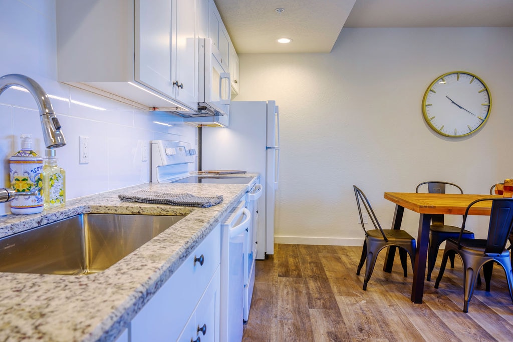 This new one bedroom, one bath condo is located in downtown Friday Harbor, just 4 blocks from the ferry. This condo features hardwood floors, island fir kitchen countertops, and beautiful decor. One queen bed, plus a Queen Murphy bed in the living room, which closes to the rest of the condo with a pocket door for privacy.
