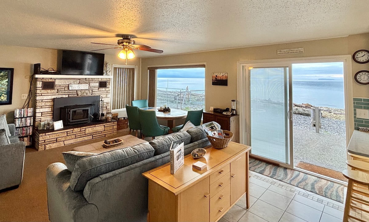 Northwewst contemporary designed guest house. Lots of sunlight and great views of the Straights, Mountains and an abundance of sea life, eagles, deer, fox, and other wildlife. Private tennis court with basketball hoops. Private cove to launch your kayak or just some great tide pooling. Note; Owners home is on the property. The cottage sets back approximately a football field away from the main house, affording it’s own privacy. Owners are normally always on property.