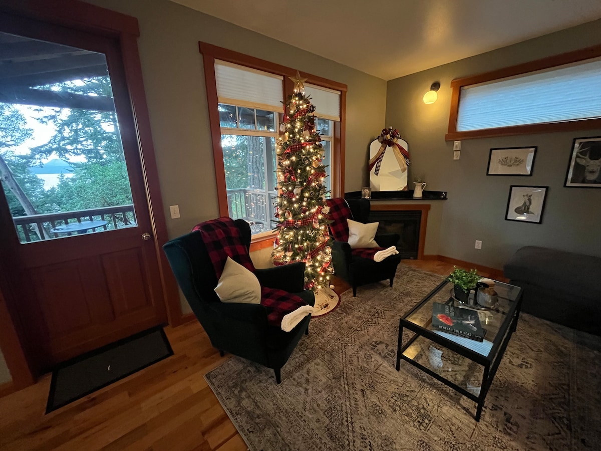 Kick back and relax in this calm, stylish space. Indulge in the island lifestyle and make this large bayside condo ( 1000 sq ft) your getaway when visiting Orcas Island. Come relish the resort life with a gorgeous view of Cascade Bay. The whole unit boasts two balconies facing Cascade Bay and daily visits from the island deer. While relaxing in this wonderful setting, watch for deer, rabbits, and more than 250 species of birds. Special rates for activist/artist/musicians/people in recovery.