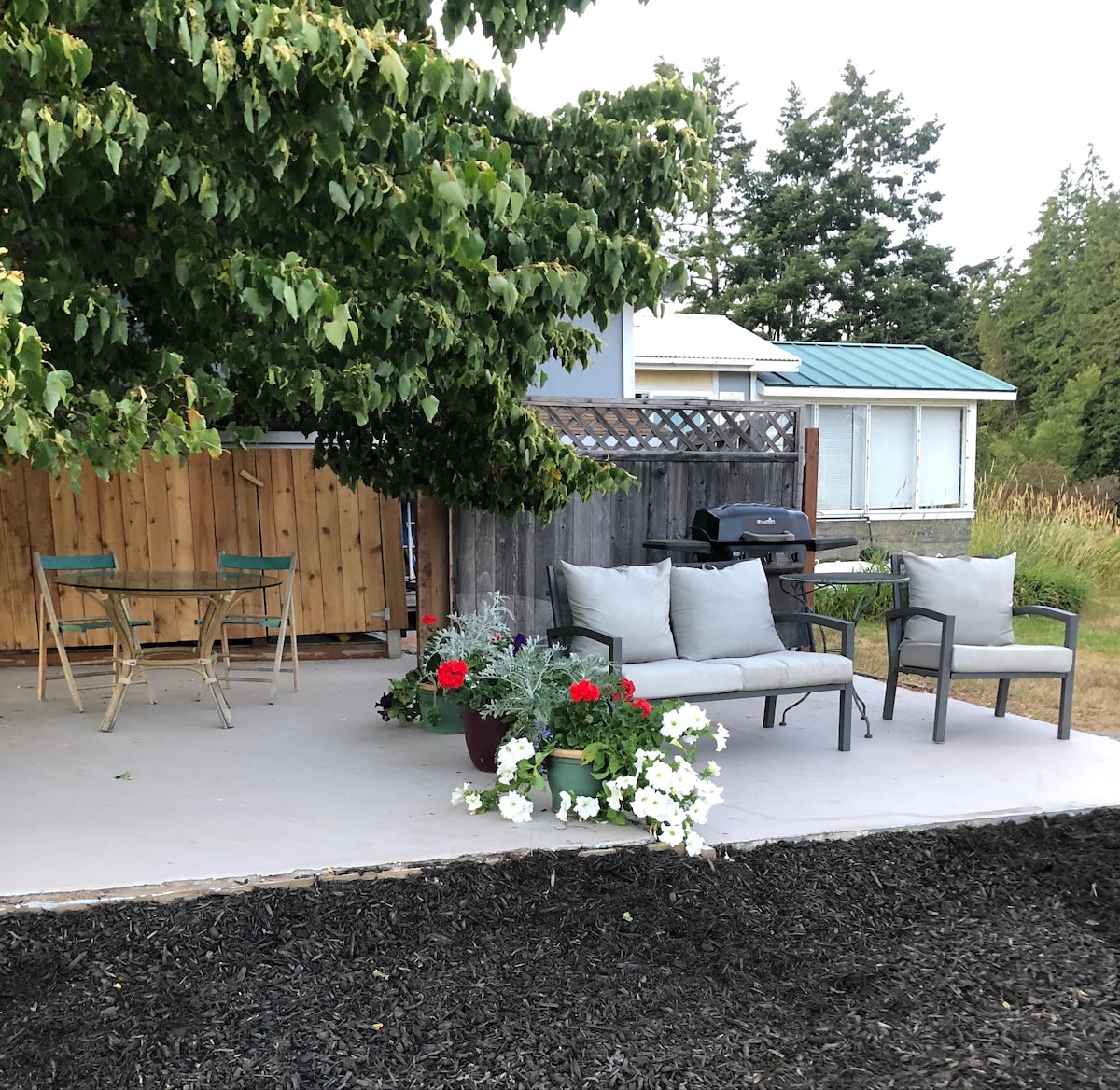 With beautiful views of the Salish Sea, our charming cottage is perfect for a solo retreat or a couple's getaway. Just a short walk to restaurants, shops, and a waterfront park, you can enjoy the convenience of town while waking each morning to sunrises from the deck, or the comfy queen-size bed in this perfectly designed studio. Our studio cottage features: ☀️ All-new appliances ☀️ Quartz countertops ☀️ Custom-tiled bathroom ☀️ Luxury linens and amenities Your island escape is ready for you ✨