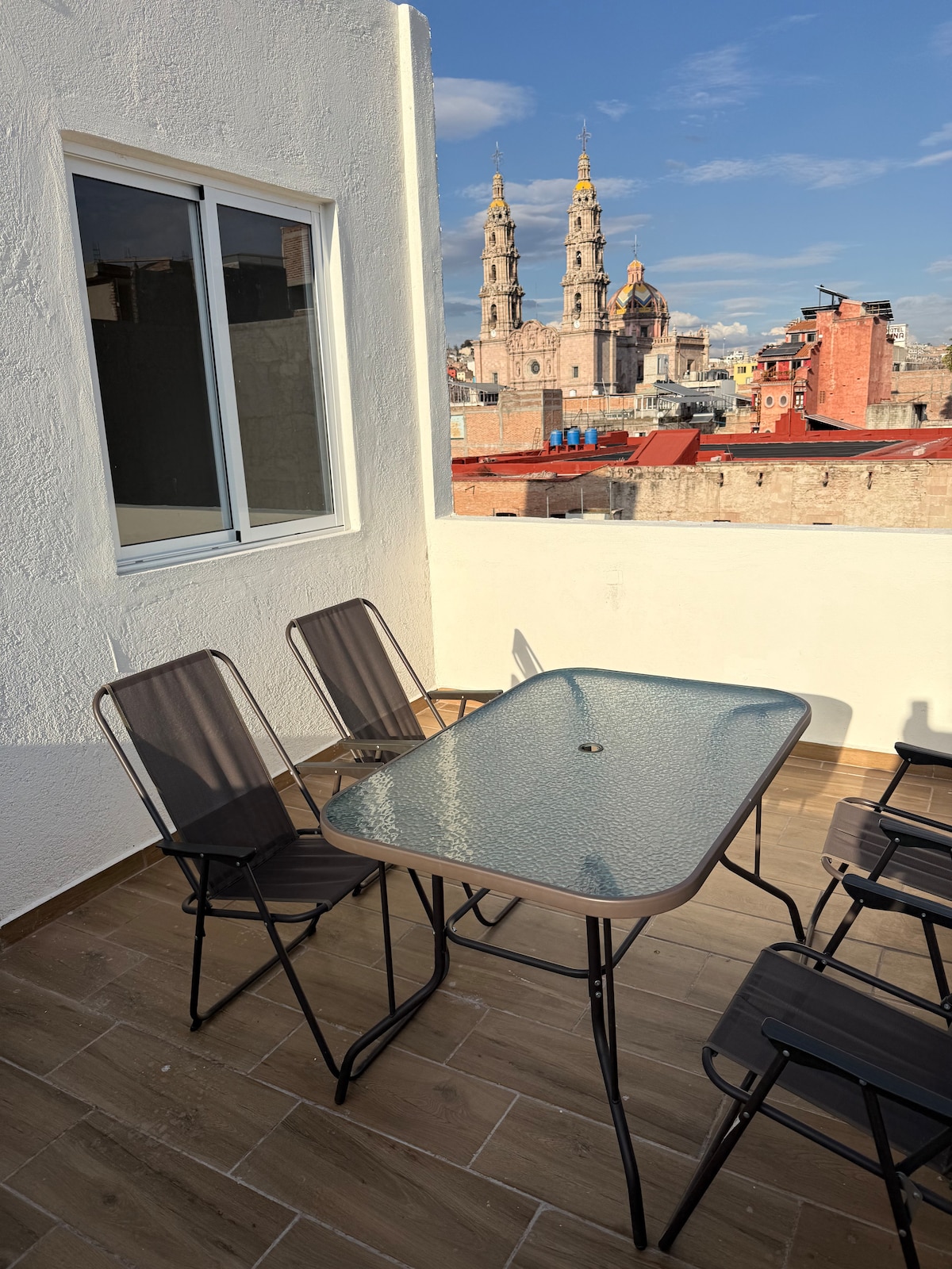 Hermoso Loft con Terraza y Vista Excepcional de la Ciudad. Super cómodo para pasar una estancia increíble. Lugar Mágico para compartir momentos con alguna persona especial. Un Espacio creado para desconectarte del estrés y descansar. Todos los servicios básicos incluidos. Cuenta con mesa de juegos. WiFi, TV y streaming. El Loft se encuentra en un 3er piso. No tenemos elevador. El baño y regadera se encuentran separados del Loft. Se tiene que cruzar la terraza para acceder a ellos.