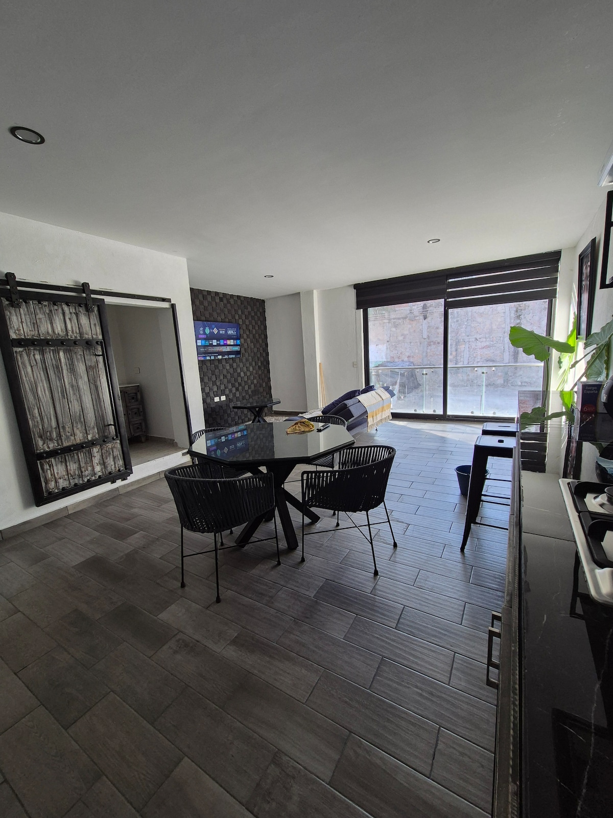 Hermoso Loft con Terraza y Vista Excepcional de la Ciudad. Super cómodo para pasar una estancia increíble. Lugar Mágico para compartir momentos con alguna persona especial. Un Espacio creado para desconectarte del estrés y descansar. Todos los servicios básicos incluidos. Cuenta con mesa de juegos. WiFi, TV y streaming. El Loft se encuentra en un 3er piso. No tenemos elevador. El baño y regadera se encuentran separados del Loft. Se tiene que cruzar la terraza para acceder a ellos.