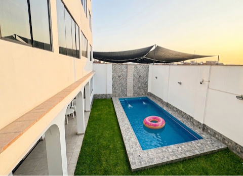 Es un espacio NO SILENCIOSO. Ideal para quienes buscan una experiencia diferente. La piscina es PRIVADA. Perfeto para parejas y reuniones de hasta 4 personas. Disfruta de una piscina privada para ti y tus amigos. Pago extra por servicio de alimentos y bebidas de 9am a 1am. Está conectado a un restobar - discoteca. De día se puede conocer los acantilados, montar bicicleta, running en el Morro Solar, surf en la Playa la Herradura, senderismo a la Chira y recorrido al serpentín de la herradura.