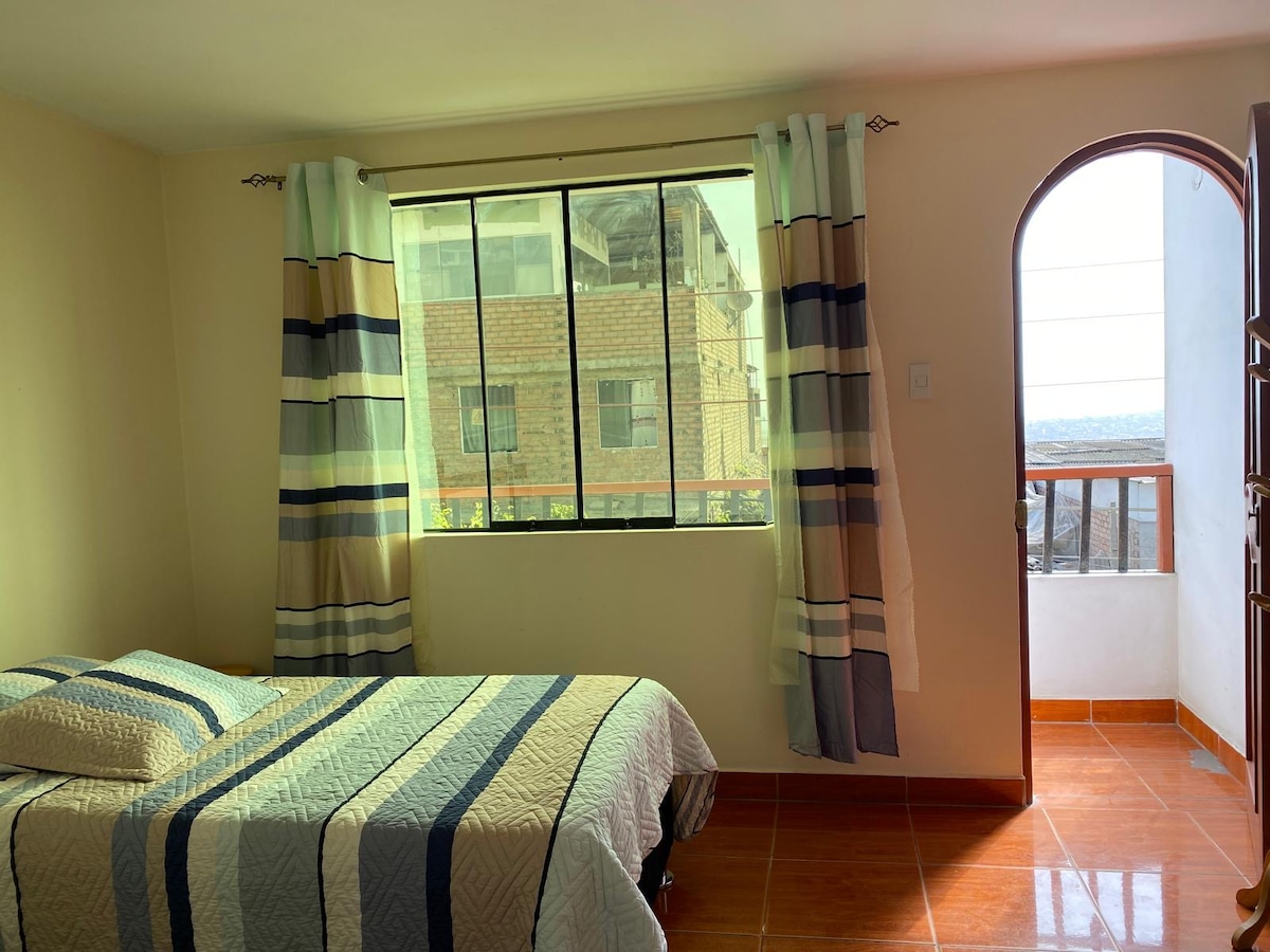 Te damos la bienvenida a nuestro loft, perfecto hasta para 3 personas(1 cama más 1 sofa cama), con un espacio cómodo y moderno de 30m2. Ubicado en un tercer piso con entrada independiente. Tengo una cochera donde caben sólo motos, si tienes auto puedes dejarlo frente a la puerta principal de la casa. Además hay un parque a una calle de distancia para poder hacer tus cardios.