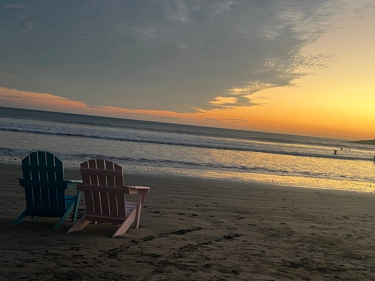 Villa Palmera is beachfront nestled 30 mts above the beach inside Villas Playa Maderas. Direct beach access. Watch from front chairs the waves rolling in and people walking at the sandy beach in the idyllic bay. Use fiber optic wifi as good as any city in the world. A perfect holiday base for unforgetable memories for families and friends with many things to do and enjoying amazing sunsets and wonderful views of the Pacific Ocean. This villa shares the 13 m infinity pool with another villa.