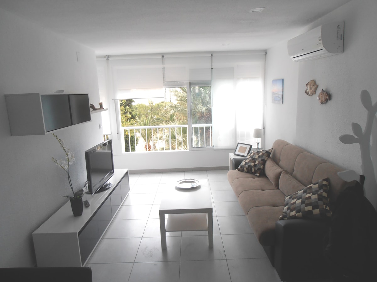 Beautiful apartment in wonderful urbanization 10 minutes walk from the San Juan Beach. Urb. with pool , playground and bar. 2 bedrooms , one with double bed and one twin, wardrobes in both rooms. 1 bathroom. Kitchen with oven , microwave , toaster , blender, washing machine, refrigerator and household goods. Air conditioning with cold and heat. Travel cot and high chair for babies. There is also material for the beach (umbrella , goggles , fins and tubes for adults and children)