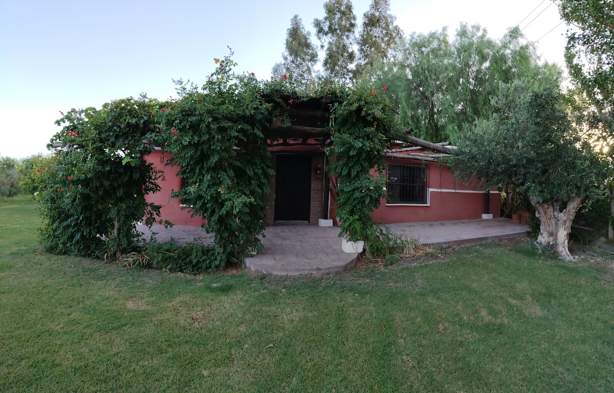 Relájate en este alojamiento único y tranquilo en una finca de Uspallata. Ideal para descansar, vas a disfrutar de un entorno exclusivo entre bosques y cultivos frente a la Cordillera, ubicado a solo 3 km del centro de Uspallata. El interior de la casa está completamente remodelado, cuenta con todos los servicios, cocina amplia y completamente equipada. Todos los ambientes son confortables y luminosos. Además podrás disponer de leña para la estufa interior y el fogonero exterior. Wifi Starlink.