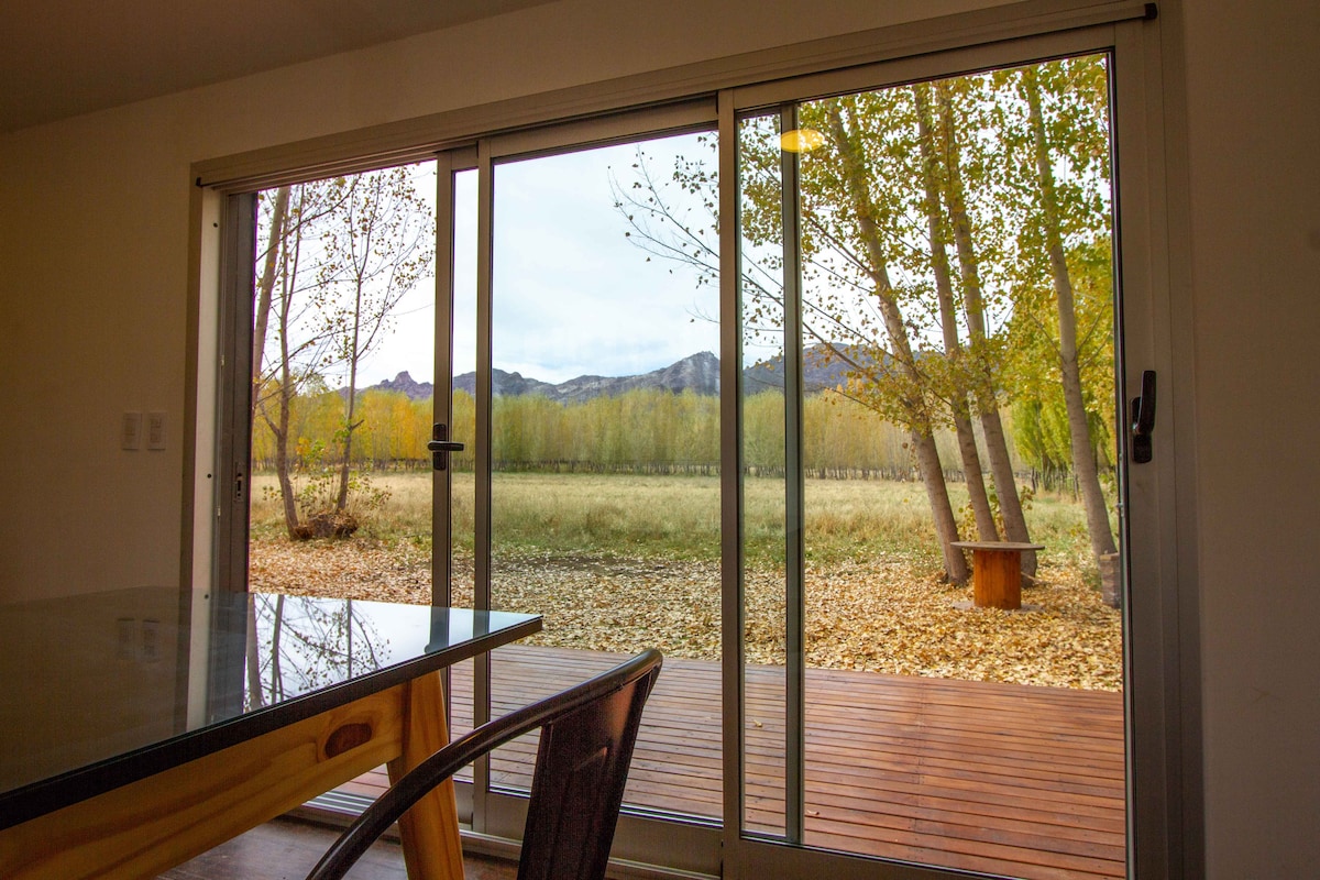 Relájate en este alojamiento único y tranquilo en una finca de Uspallata. Ideal para descansar, vas a disfrutar de un entorno exclusivo entre bosques y cultivos frente a la Cordillera, ubicado a solo 3 km del centro de Uspallata. El interior de la casa está completamente remodelado, cuenta con todos los servicios, cocina amplia y completamente equipada. Todos los ambientes son confortables y luminosos. Además podrás disponer de leña para la estufa interior y el fogonero exterior. Wifi Starlink.