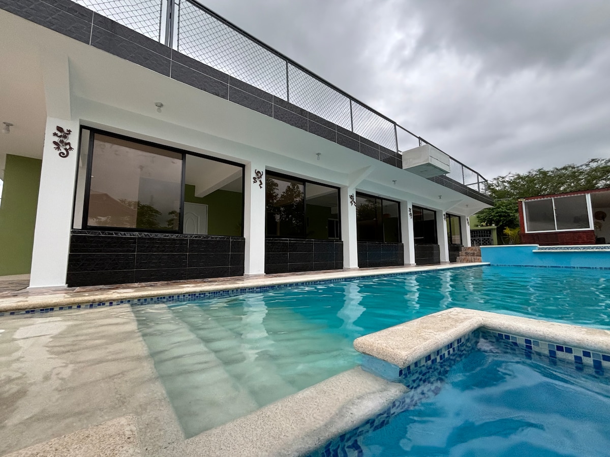 Ideal para vacacionar en grupos y/o familia. Totalmente nueva comoda y segura. Ubicada en el centro de la ciudad. Cuenta con 3 amplias habitaciones, 2 baños, bomba y calentador de agua. Parqueo para 2 vehiculos con porton elecrtico, cocina totalmente equipada con microonda,tostadora, licuadora airfrier, nevera con filtro para agua, lavadora. cerca de supermecados y comercios se sentiran como en casa