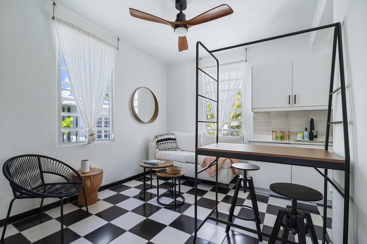 ◢◤ M❍❍D HAUS ― a 70's inspired house with different moods ◢◤ Situated in the ♡ of San Juan’s Food & Art District, only a few steps from the beach - the best location to experience Puerto Rico. At M❍❍D HAUS all units are designed with retro furniture & custom art. Each apartment is named after a Disco Diva & outfitted with a record player as well as a collection of vinyls. Go back in time to mirror balls & disco beats. UPDATE: THIS PROPERTY NOW HAS A FULL BACKUP POWER GENERATOR!