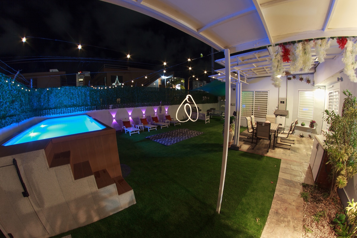 This fully private beachside cabana is designed exclusively for couples seeking a romantic retreat. Enjoy complete access to your own pool, gazebo, terrace, and ground-level suite—no shared spaces, no interruptions, just the two of you in your tropical escape. Gourmet kitchen, spacious living area, cozy terrace surrounded by plants, private parking, and the comfort of a full power generator and 500-gallon cistern. 50 steps from Isla Verde’s best beaches near the Fairmont and Ritz-Carlton.